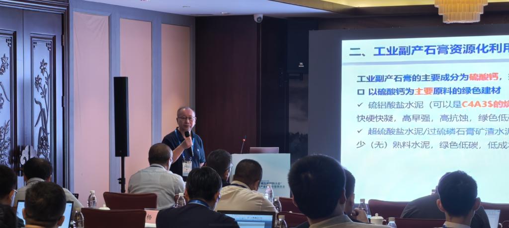 作为大会重要组成部分,桂林理工大学携手广西大学共同承办了“工况固废资源再生技术与应用论坛”分论坛。该分论坛吸引了华南理工大学、重庆大学、济南大学、武汉理工大学、北京科技大学、云南大学等十余知名高校,以及贵州省建科院、广西水科院、中国恩菲、广西鱼峰等科研院所和企业的150多位专家学者参与研讨。桂林理工大学陈平教授带领团队杨建文研究员、刘荣进教授、明阳研究员和胡成副研究员等10余名师生参加本次会议,并作为分论坛主席主持工作。会议上陈平教授围绕“工业副产石膏多途径高值化利用技术及产业化”作了精彩的特邀报告,刘荣进教授和孙杨博士后分别作了“普碳/不锈钢渣在线熟料化再生技术及应用”和“碳捕获制备球霰石及其对CSA水泥水化性能的影响”的主旨报告,也引发了与会专家的热烈讨论。